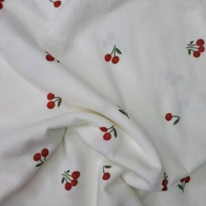 Kích thước sợi: 40s*40s Mật độ sợi: 233TC Trọng lượng: 140 g/m² Màu sắc: họa tiết trắng quả cherry hiện đại Hoạ tiết: quả cherry Khổ vải: 2,4 m |